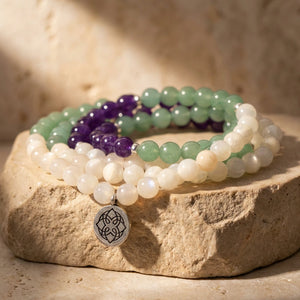 Votre Mâlâ peut être porté comme un collier ou enroulé autour de votre poignet en bracelet. En l’adoptant au quotidien, vous porterez avec vous bien plus qu’un simple bijou : ce sera un véritable compagnon de vie qui vous aidera à rester connecté(e) à vos intentions et à votre cheminement personnel.