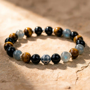 Ce Bracelet associe en une seule création les pierres protectrices les plus puissantes.