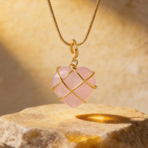 Découvrez l'élégance et la douceur du Pendentif Coeur en Quartz Rose.