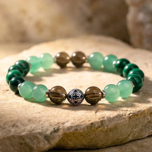 Matériaux : Aventurine, Quartz Fumé, Malachite, Acier inoxydable