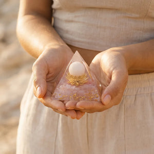La Pyramide Orgonite “Bulle de Tendresse” a été pensée comme un objet d’apaisement : un repère visuel et énergétique qui invite naturellement au calme, à la bienveillance, et à une énergie de cœur plus ouverte.