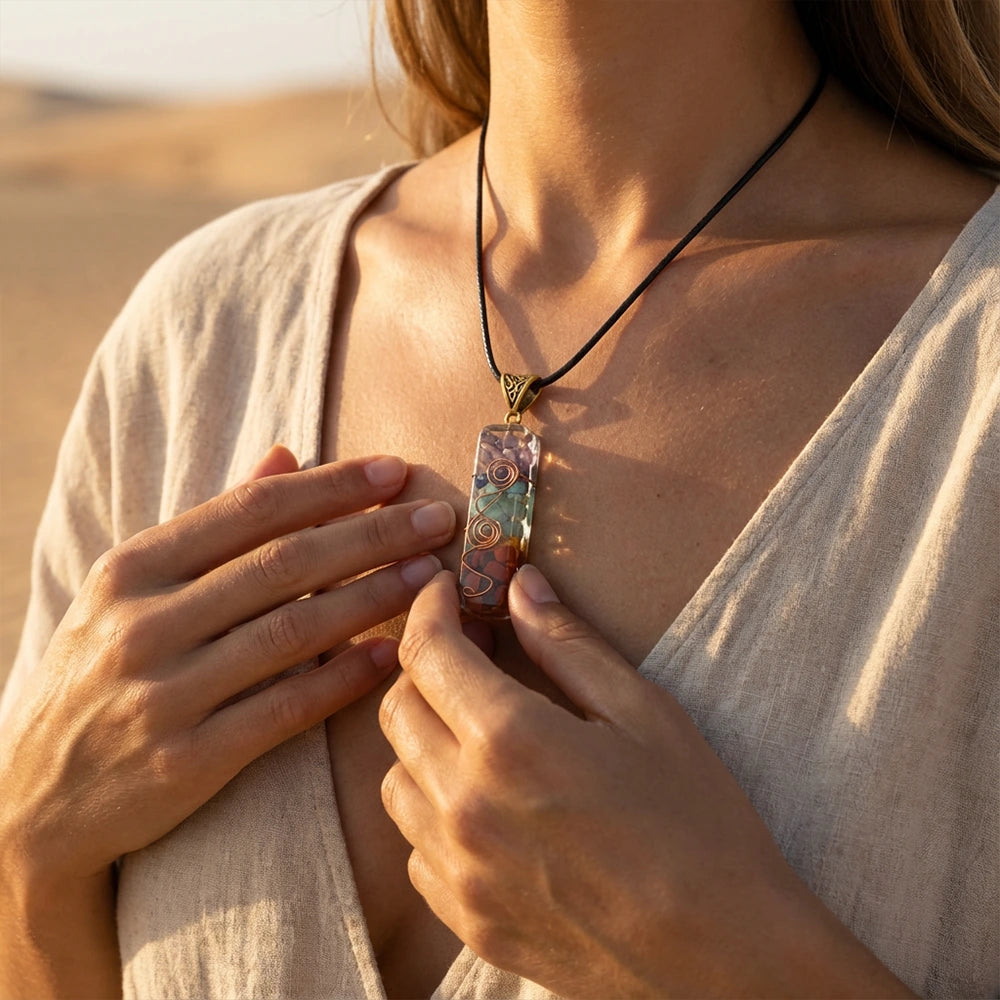 Pendentif Orgonite 7 Chakras Allongé - Boutique Namasté
