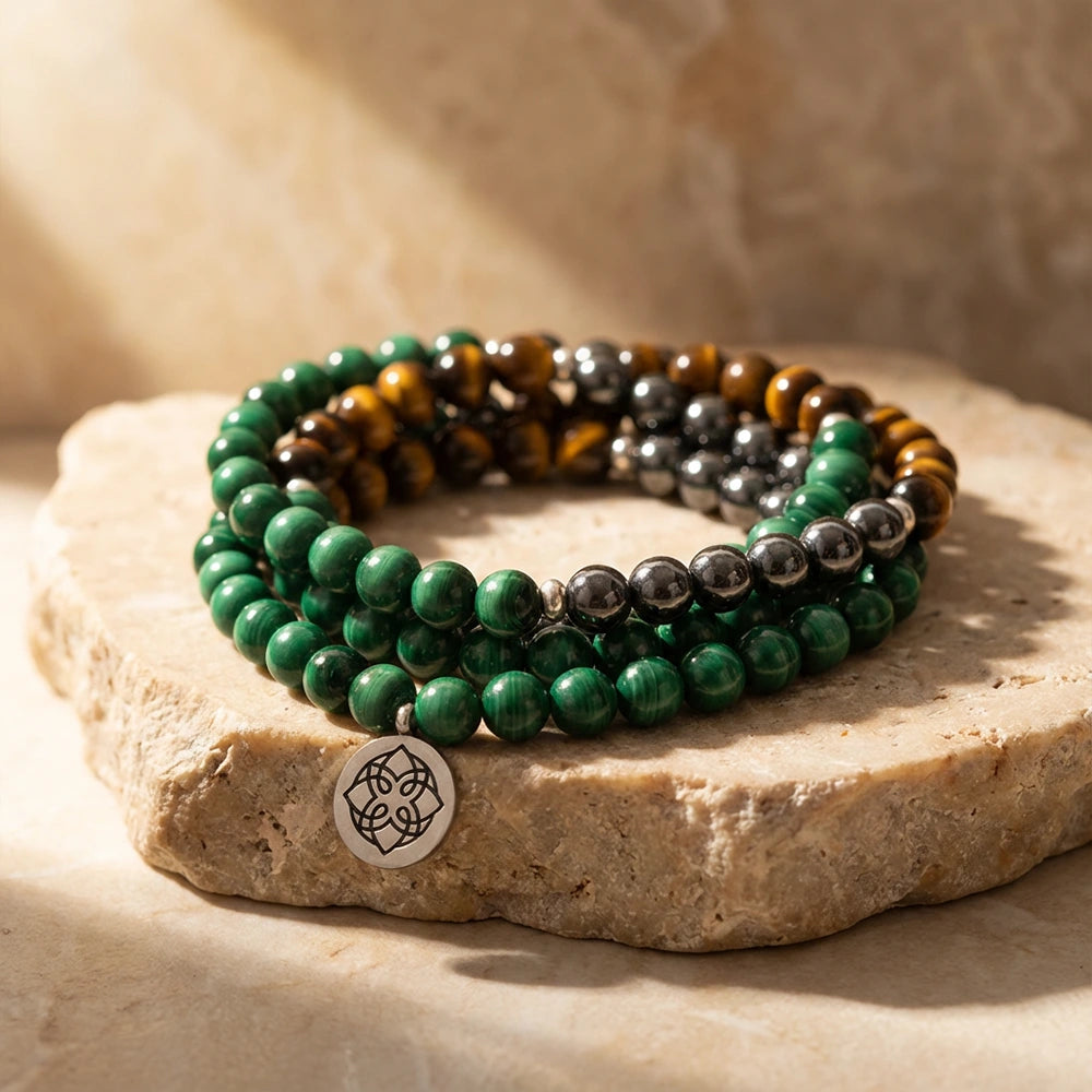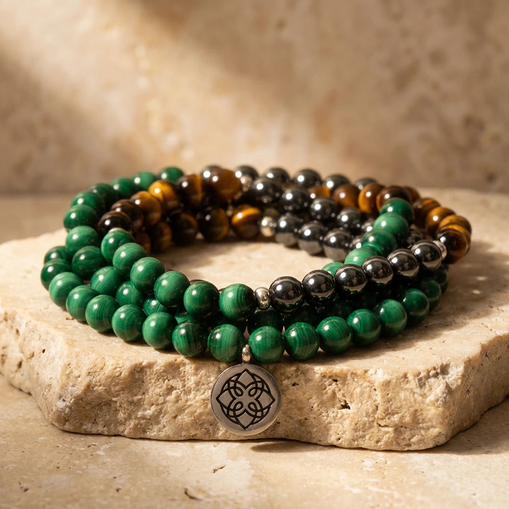 Matériaux : Malachite, Hématite, Œil de Tigre (qualité AAA)