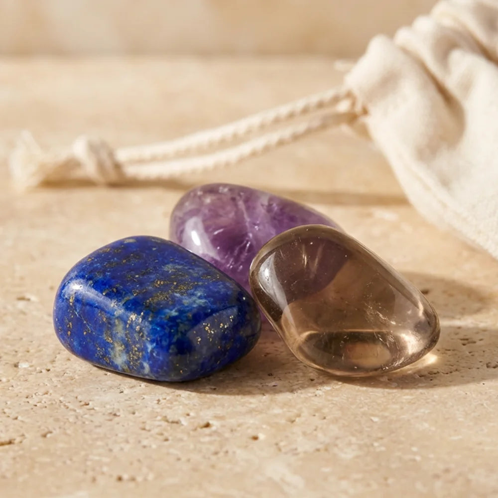 Le Pochon des 3 Pierres â Anti-Stress est votre invitation Ă un monde de calme et de relaxation. Laissez ses pierres apaiser votre esprit et vous guider vers un Ă©tat de tranquillitĂ©.