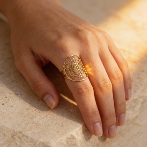 Découvrez la Bague Géométrie Sacrée, un bijou élégant et mystique qui incarne le Cube de Métatron, symbole puissant de la géométrie sacrée. Porter cette bague peut vous aider à renforcer votre connexion spirituelle, à attirer une énergie positive et à équilibrer vos chakras.